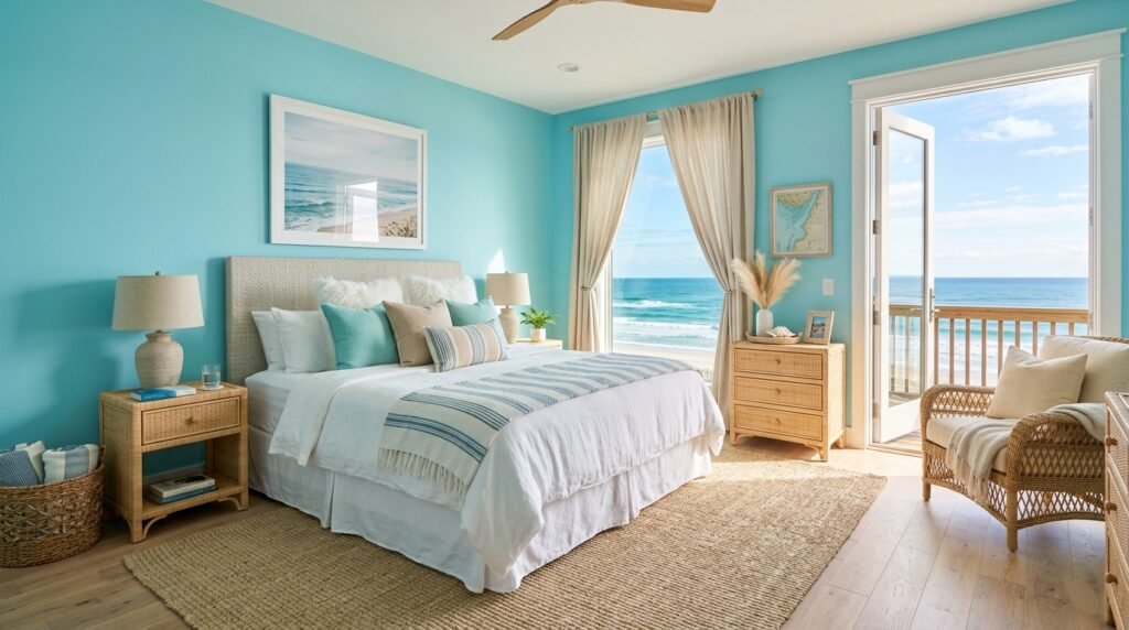 Aqua reminds people of tropical water. It is a bright and happy Blue Decor For Bedroom choice. Use it in rooms with lots of sunlight. The sun makes the aqua glow.