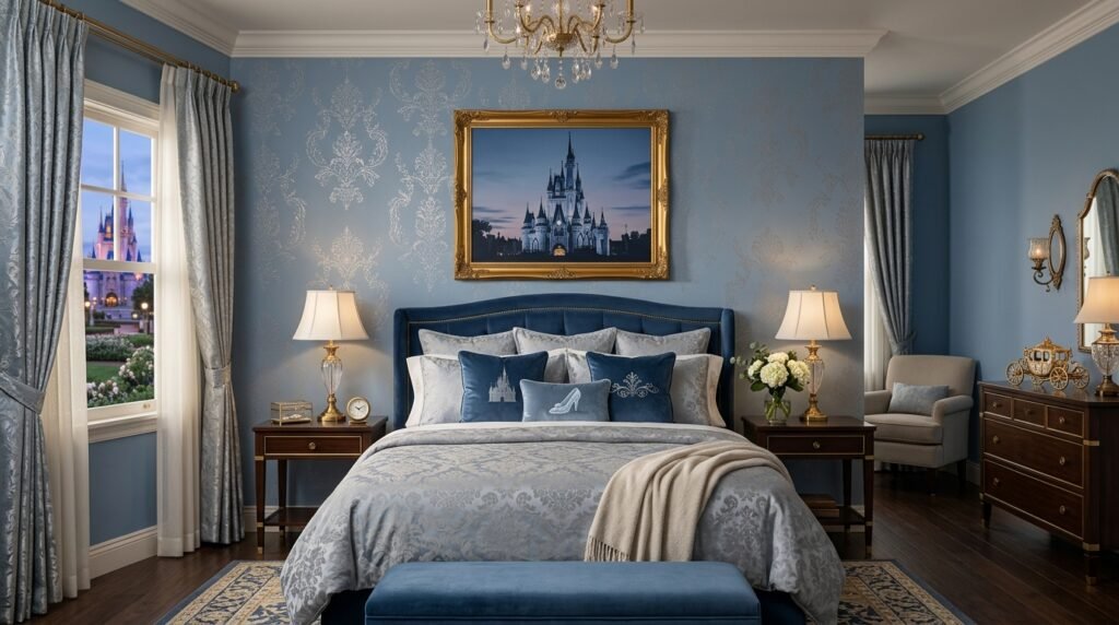 You can enjoy a theme without it looking childish. Disney Themed Bedrooms For Adults use color to tell a story. Think of a Cinderella suite. Use powder blue walls and silver accents. It feels royal and calm. I suggest using a subtle damask wallpaper in light blue.