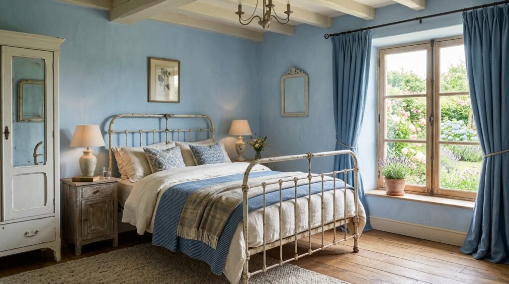 I once helped a grandmother in Provence style her guest wing. We used light blue floral curtains. We added a vintage iron bed frame. It felt timeless. This look is great if you love antiques and soft light.