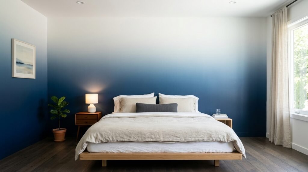 Ombre walls go from dark blue at the bottom to light blue at the top. It looks like a sunset or a deep ocean. This requires a bit of skill to paint, but the result is art.