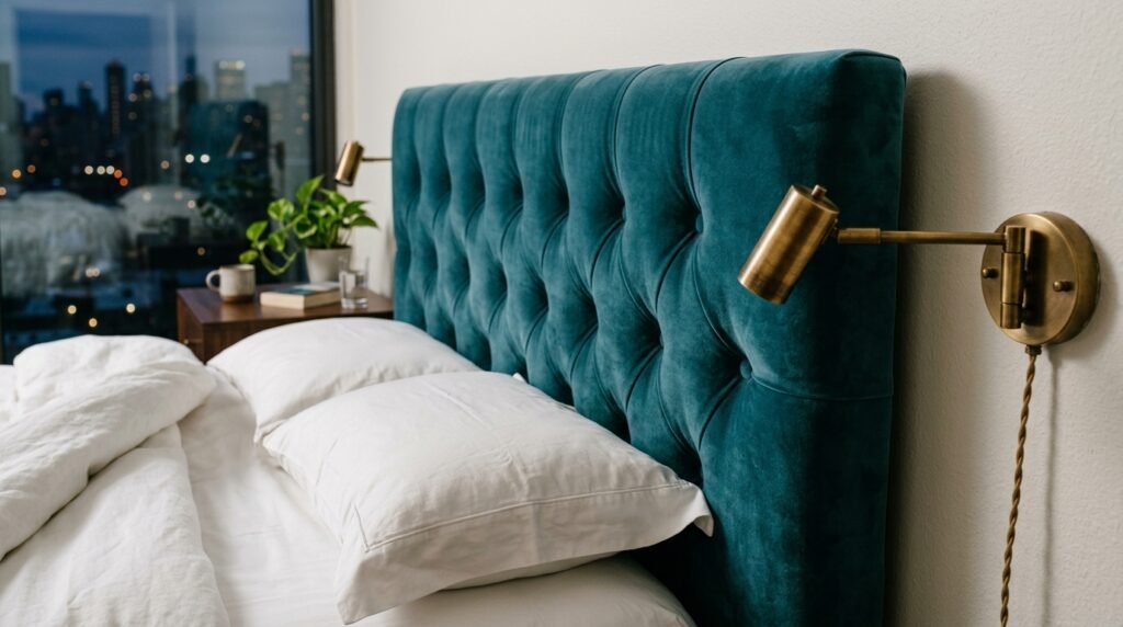 In my experience, teal pairs perfectly with brass lamps. It creates a mid century modern vibe. I worked with a bachelor in Austin who wanted style. We chose a deep teal headboard and walnut nightstands. It looked sharp and masculine.