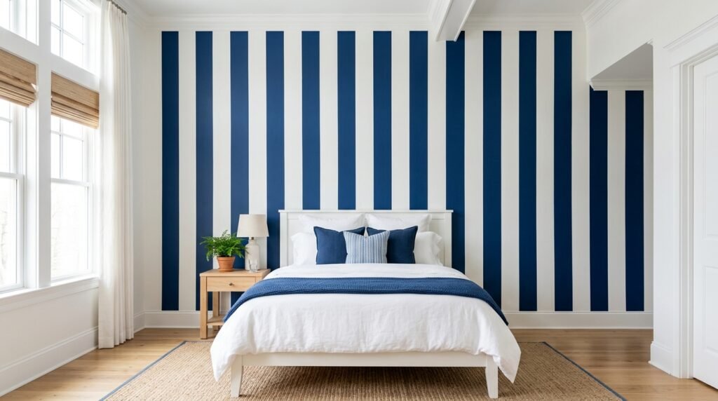 Stripes are a classic Blue Theme Bedroom Ideas element. They can look nautical or preppy. I like wide vertical stripes for a bold look. Use thin horizontal stripes for a subtle texture.