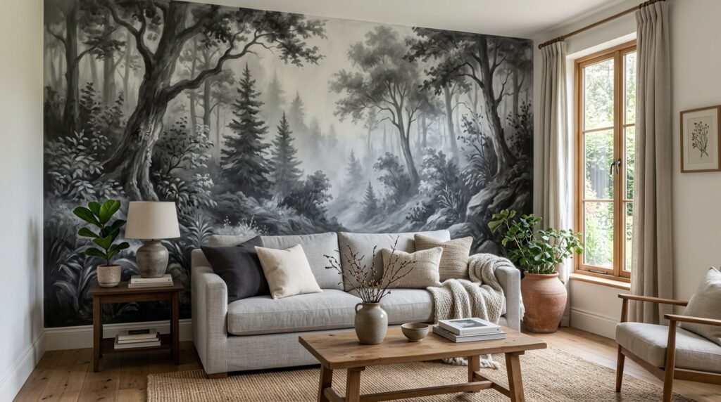 A mural makes your wall a one of a kind piece. I do not mean a cheap sticker. I mean a real artist with a brush. I saw a house design where the wall showed a misty forest. It was done in soft grays and greens.