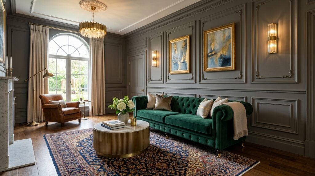 Upholstered walls feel very quiet and private. You wrap large panels in silk or velvet. I saw this in a bedroom once. Then I tried it in a drawing room ideas interior design project. We used a deep blue velvet. It changed the sound of the room instantly.