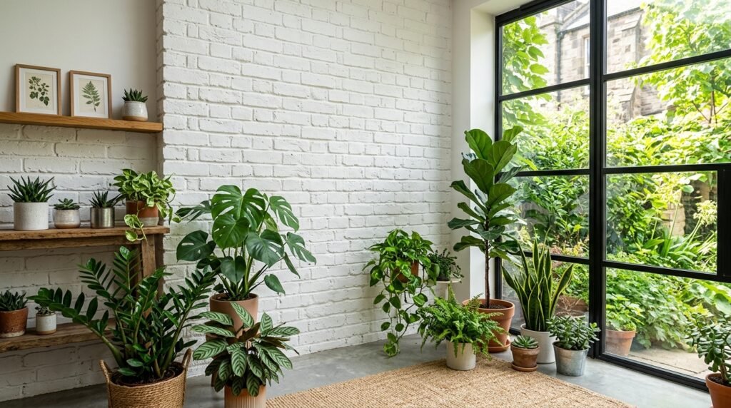 I’ve noticed that white brick reflects a lot of light. This is great for a lounge wall design. I use Benjamin Moore Simply White. It is a warm white that does not look blue. This works for wall decor classic styles. You can hang heavy art on the brick. Use a masonry drill bit. It is a solid choice for a house design that wants a mix of old and new. It feels very clean and fresh. Use a thick roller to get the paint into the gaps.