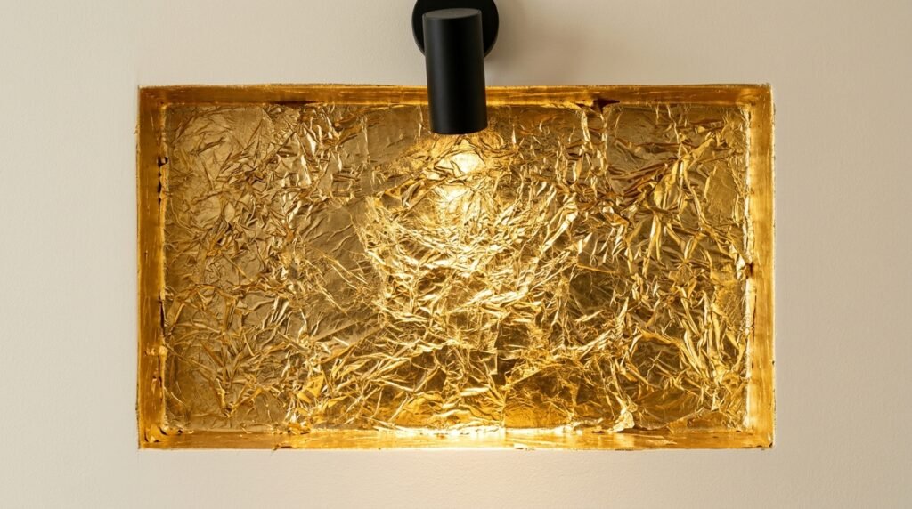 In my experience, the surface must be very smooth. Any bump shows through the gold leaf. I’ve noticed that a red base coat makes the gold look warmer. This is a very high-end look for luxurious interiors. It feels like a piece of jewelry for your room. It works well with aesthetic drawing room furniture. Do not overdo it. One small area is enough. It is a great way to bring classic home design living room vibes to life. Use a soft brush to press the leaf down.