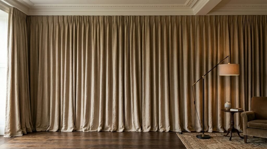 Sometimes the best wall is not a wall. It is a wall of fabric. You can run a track across the whole wall. Hang heavy velvet or linen curtains. I saw this in a lounge wall design where the window was small. We covered the whole wall to hide the small window.
