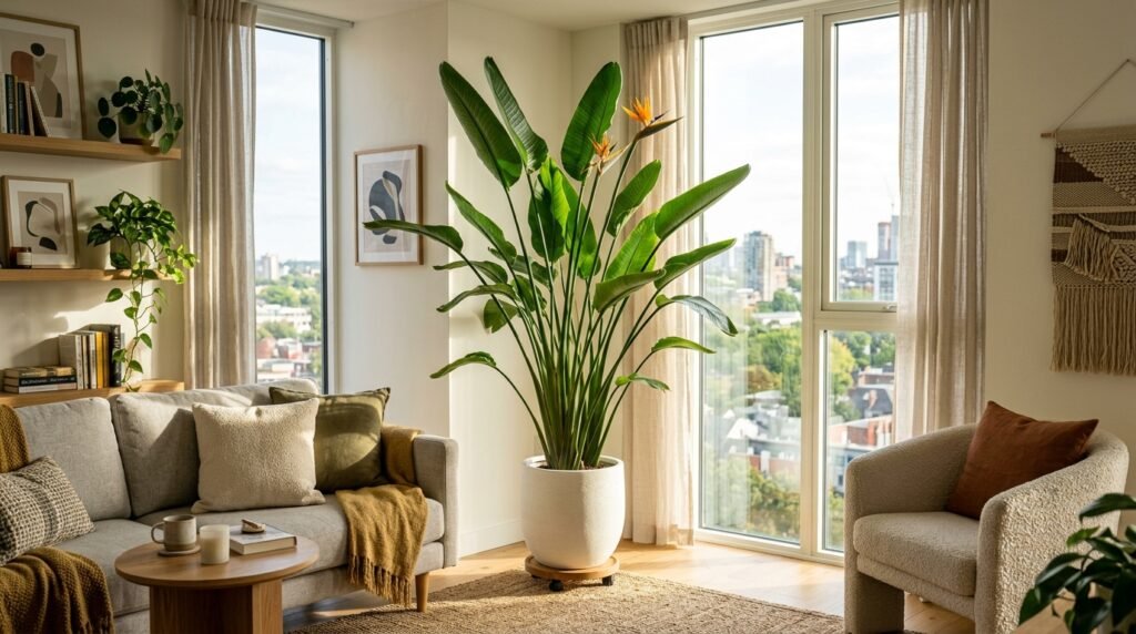 Plants change the energy of a room. I like tall plants like the Fiddle Leaf Fig or Bird of Paradise. They add height and color to a minimalist interior.