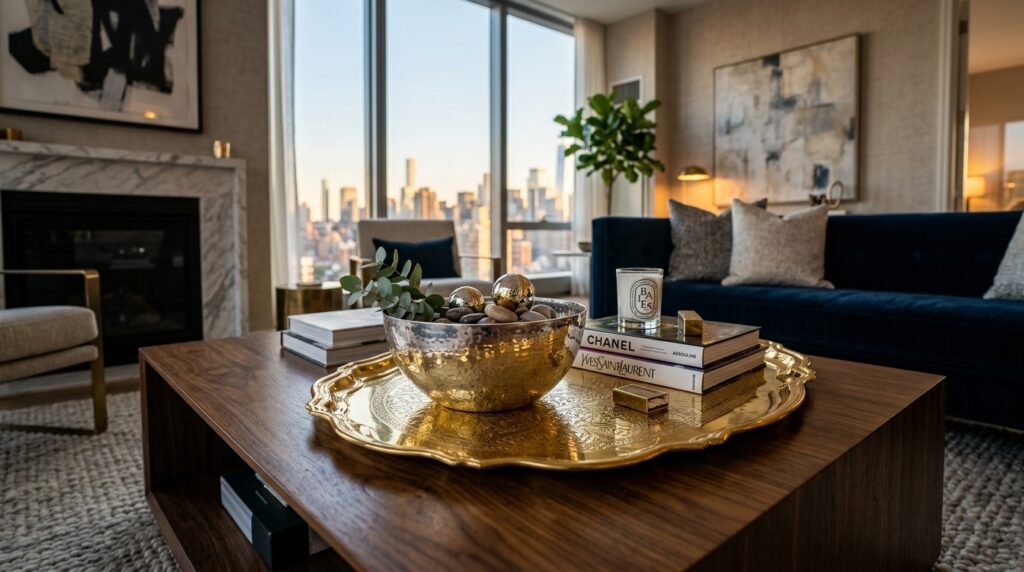 A little gold or silver goes a long way. I use metallic trays or small bowls. They catch the light and add a touch of luxury condo style.