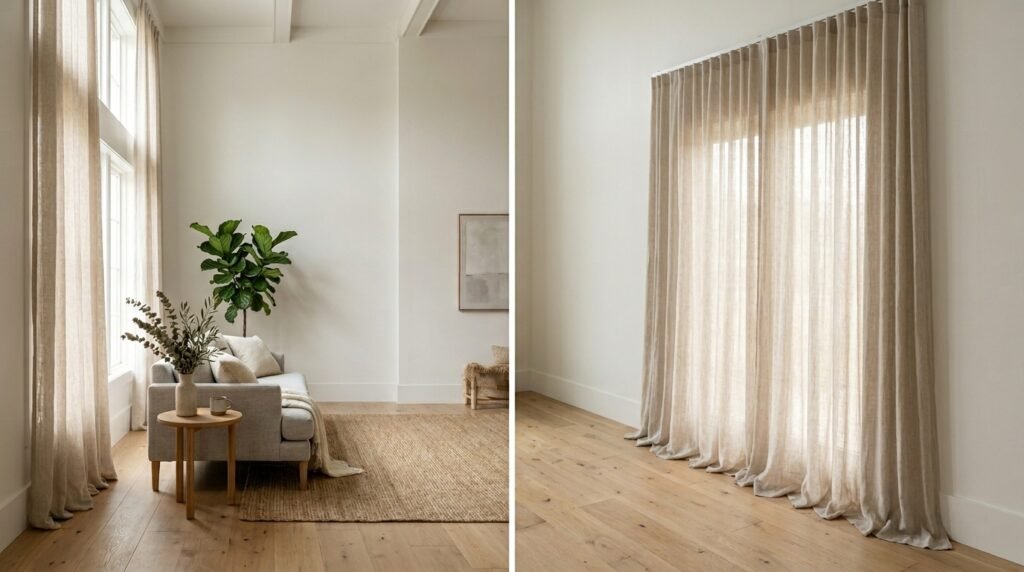 Choose light, breathable fabrics like linen. They filter light without making the room dark. I tried heavy velvet in a small space once and it felt like a cave. Stick to neutral tones for a minimalist interior look. This keeps the focus on the view and your furniture.