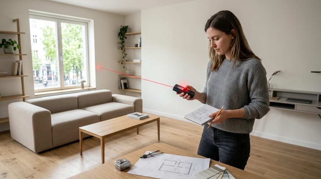 I never start a project without my laser measure. The Bosch Blaze is my favorite tool. It is more accurate than a tape measure. I also use the Magicplan app. It lets me draw a floor plan on my phone just by taking pictures.