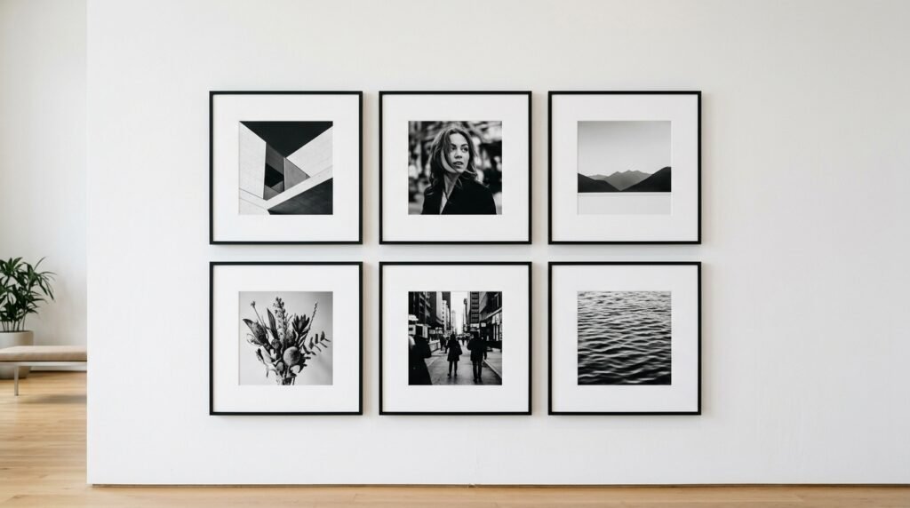 I prefer black frames with white mats. I did this in my first small apartment. It looked like a professional gallery. It kept the room from feeling messy while showing my personal history.