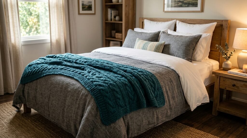 Do not just use a flat comforter. Layer your bed like a pro. Start with crisp white sheets. Add a thin coverlet. Place a textured throw blanket at the foot of the bed. This adds depth. In a Guest Bedroom Mid Century Modern layering makes the bed look inviting. I use a waffle knit throw in the summer and a wool one in the winter. It keeps things functional.