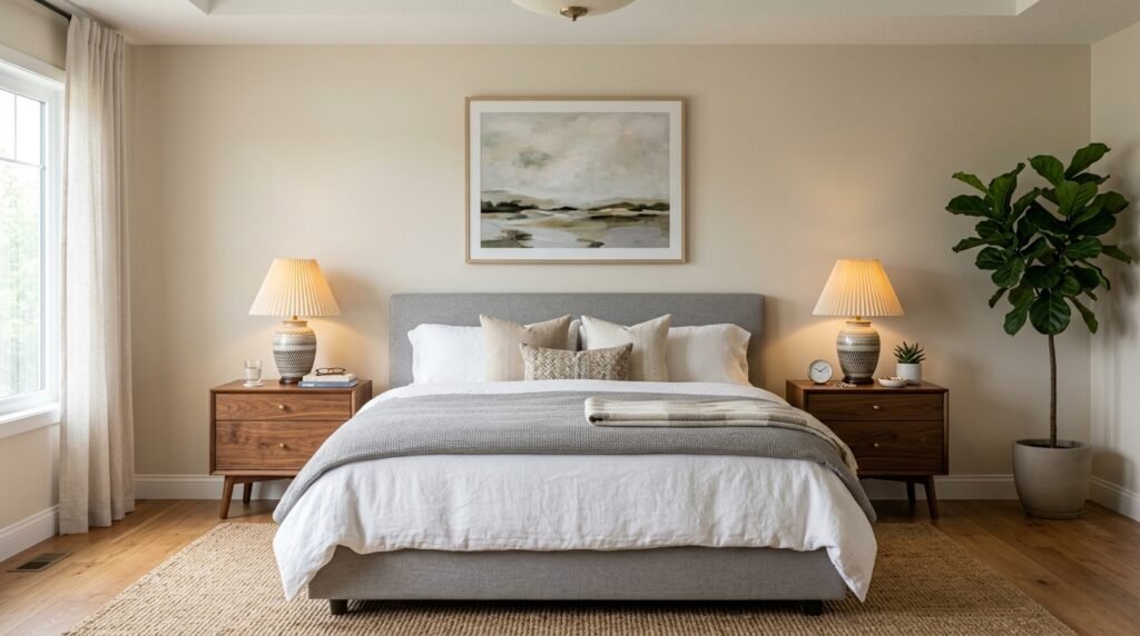Balance is a core part of Bedroom Inspirations Mid Century. Place identical nightstands on both sides of the bed. Use matching lamps too. This symmetry creates a calm feeling. It tells your brain the room is organized. I find this especially helpful in a Guest Bedroom Mid Century Modern. It makes guests feel like the space was designed just for them. It feels intentional and high end.