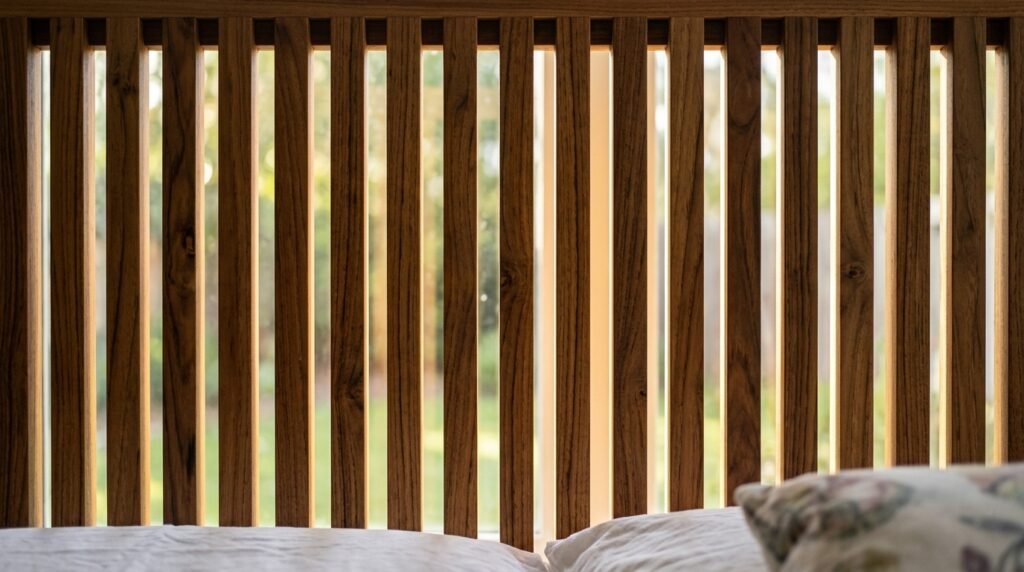 Slats add a rhythmic pattern to the room. You can find this on headboards or room dividers. It is a classic Danish Modern Bedroom feature. It allows light and air to pass through. I once used a slatted screen to hide a home office in a bedroom. It kept the space feeling open. It added a high end architectural feel for a low price.