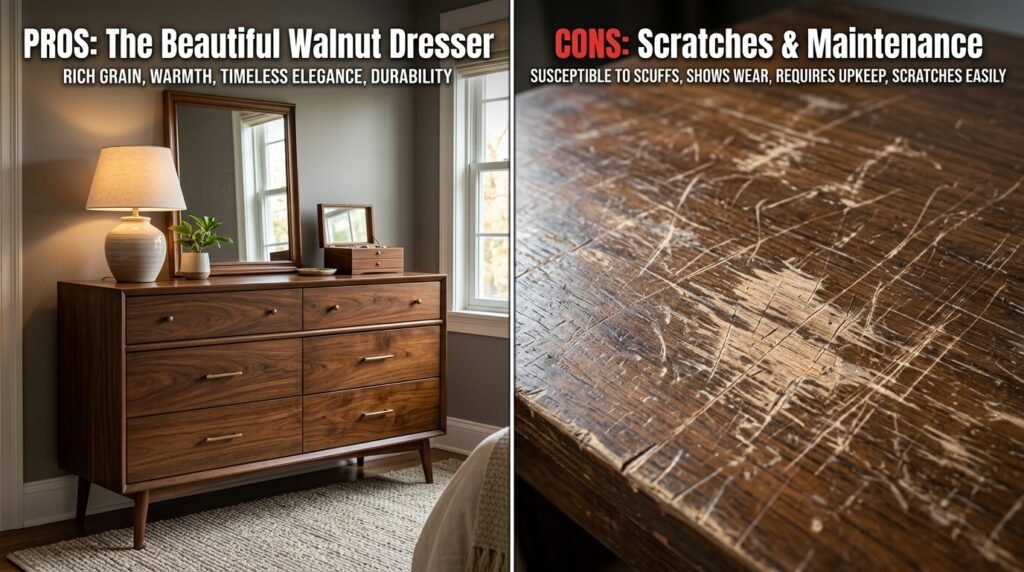 | Material | Solid wood lasts a long time. | High quality wood is expensive. |