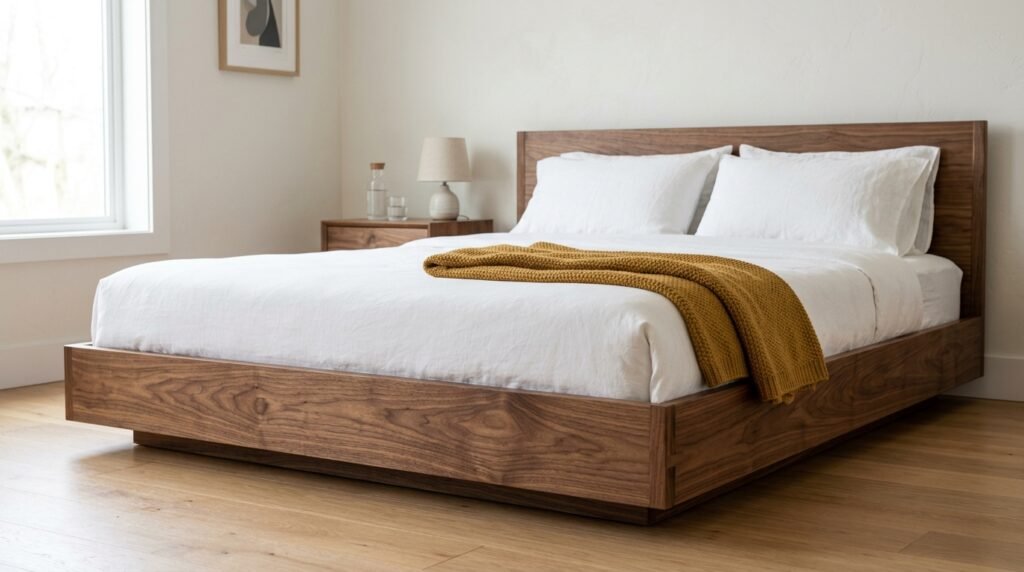 A low profile bed is the foundation of every Midcentury Bedroom Design. These frames sit close to the floor. They create a sense of height in the room. This works perfectly for a Mid Century Modern Small Bedroom. I once tried to put a heavy canopy bed in a small space. It felt like a cage. When I switched to a simple walnut platform the room opened up. Look for frames with solid wood slats. You do not need a box spring. This keeps the lines clean.